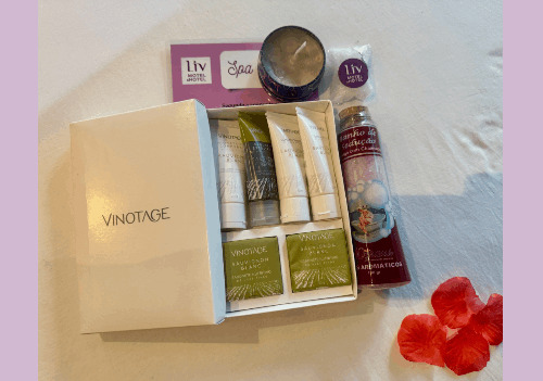 Sais de banho sedução, vela aromática e sais para escalda pés kit vinotage com hidratante para massagem, esfoliante corporal, sabonete nutritivo, shampoo e condicionador decoração com pétalas artificiais e frase em eva personalizada ou plaquinhas prontas.